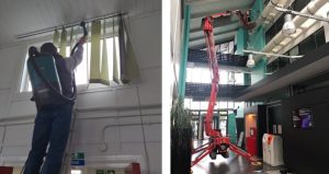 JH Cleaning Services can access hard to reach areas with ease. We are IPAF trained and certified to use scissor lifts, cherry pickers, and high level vacuums.